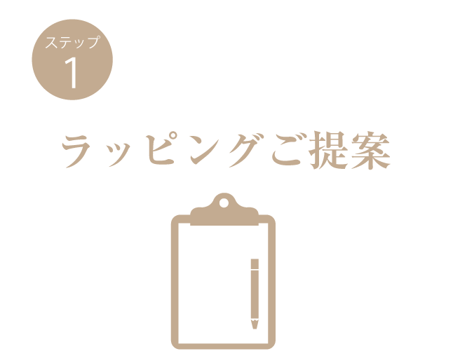 ラッピングの資格をもった担当 が、お贈りする方のプロフィールやシーンをお聞きして、ラッピングをご提案させていただきます。